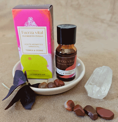 Pertenece al elemento Fuego (de los signos Aries, Leo y Sagitario). Se trata de una energía ardiente y vital que nos impulsa a activar nuestro deseo. Nota aromática: tonka, cedro, fragancia intensa y especiada.