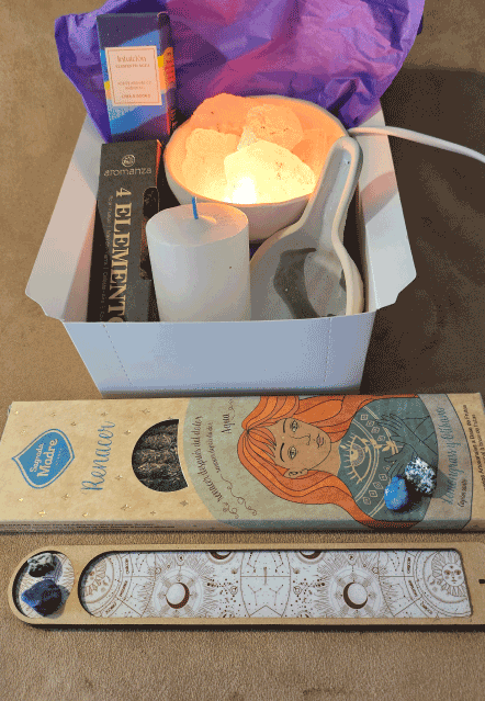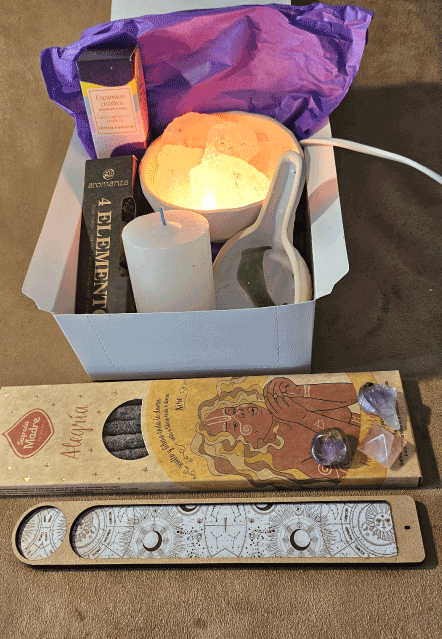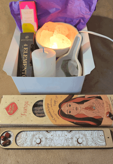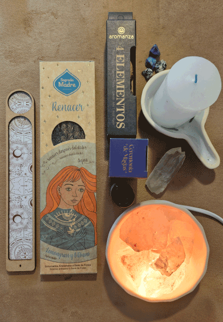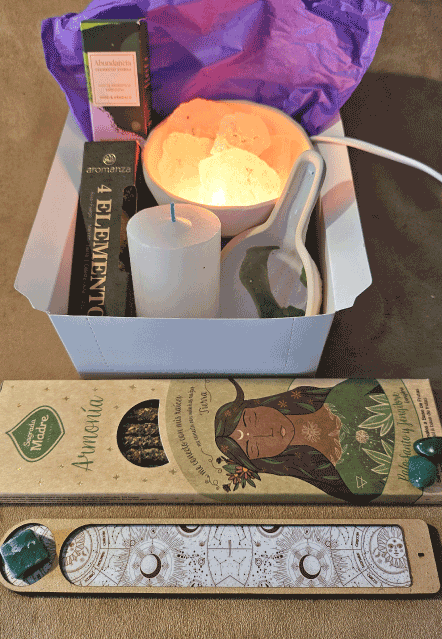 Incluye: 1 caja de Sahumerios Renacer o Armonía o Alegría o Fuerza (a elección) Porta- sahumerio de Madera. Sahumador de Cerámica. Esferas Mágicas 4 Elementos. Aceite aromático ambiental Ceremonia de Magas. Lámpara de sal chica y Velón Tres Dias Blanco. Este kit es ideal para equilibrar y armonizar los 4 Elementos que rigen nuestra vida. El aceite junto a la Lámpara de Sal mejoran el estado de ánimo, aumenta los niveles de seratonina, purifica el aire, mejora la calidad del sueño, disuelve energías negativas atrayendo las positivas, incrementa la energía y reduce el estrés. El velón, permite meditar e intencionar para lograr así un bienestar completo y pleno.