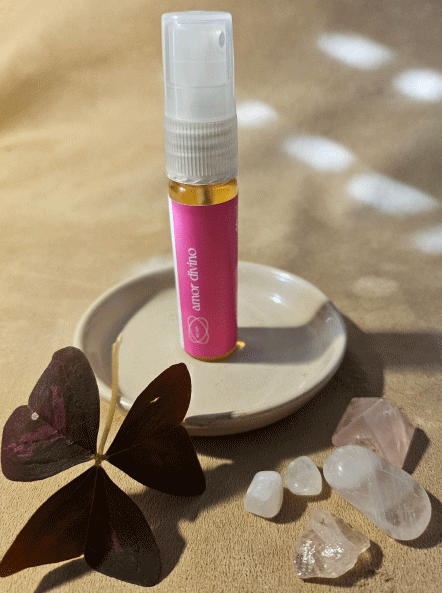 Acompaña procesos en el área afectiva. Actúa sobre el amor, la compasión, la creatividad y el auto- amor. Modo de uso: visualizar el color rosa y repetir el nombre de la loción tres veces al rociar sobre nuestra aura y tres veces al día al menos durante nueve días. Nota aromática de rosas.