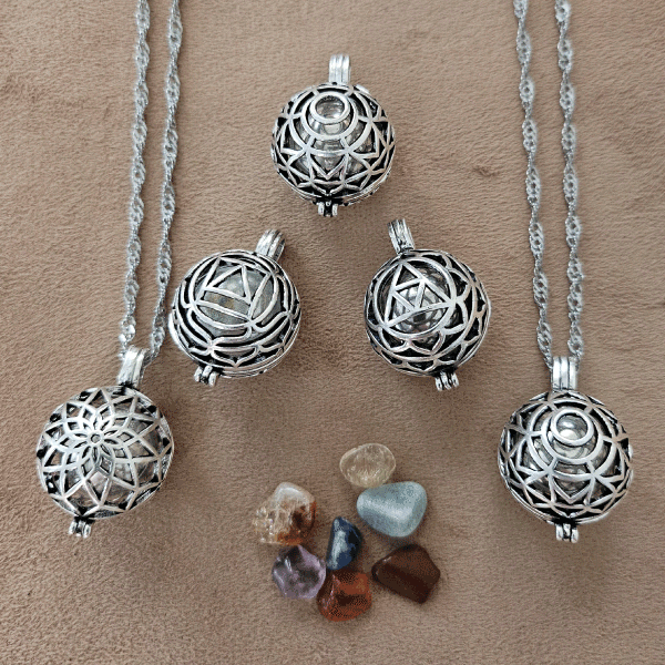 Son amuletos de gran significado espiritual y sentimental. Sirven para Protección Energética Se pueden cargar con hierbas, amuletos o símbolos sagrados para alejar energías negativas. Conexión Espiritual – Se usan para llevar consigo elementos sagrados, como cristales que sirvan para armonizar los chakras según bloqueo que se quiera elaborar. Para potenciar deseos e intenciones. Cuidado y Activación del Relicario: Limpieza energética con incienso, agua con sal o luz lunar. Carga personal sosteniéndolo entre las manos y decretando su propósito. Uso continuo para que se impregne de la energía del portador. Cadena de acero 50 cm o 55.