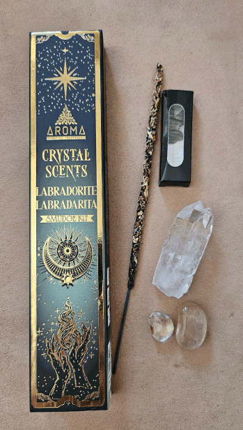 Ideal para rituales que tengan como intención la protección, la transformación, la intuición, la confianza en uno mismo. Contiene cristales en su caja. 8 varillas.