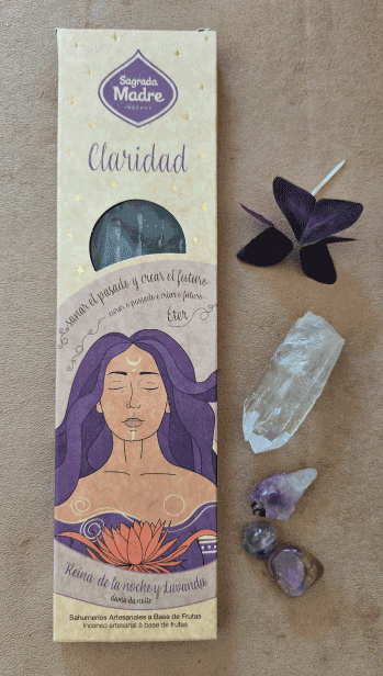 Sanar el pasado y crear el futuro. Pertenece al éter, conecta con lo sutil y el momento presente. Nota aromática: lavanda y reina de la noche. 6 varillas.