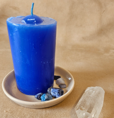 Velas de larga duración para rituales, intenciones profundas o meditaciones prolongadas. En este caso el color azul potencia el ritual para la Intuición y Comunicación.