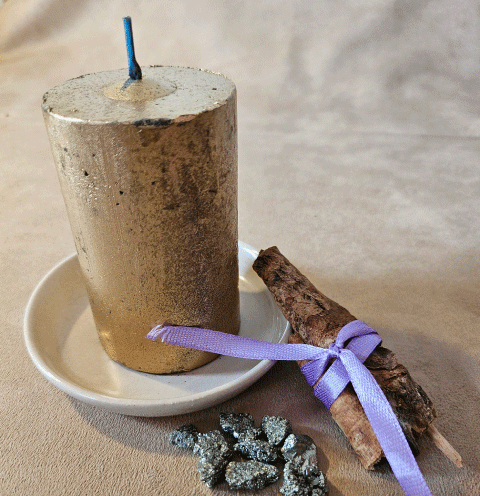 Velas de larga duración para rituales, intenciones profundas o meditaciones prolongadas. En este caso el color dorado potencia el ritual para la Abundancia y Prosperidad.